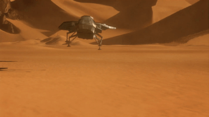 But I ask again, with all the impotent fury of George Costanza, where’s the flapping?! Rather than the beating wings of its forebears, John Harrison’s version instead opts for a pair of adjustable rear wings atop the cockpit, with jump jets embedded in the middle of them. Presumably, the technology just wasn’t there (especially for a modestly-budgeted basic cable miniseries) to render realistic-looking wing flapping in CG, so they went with more of a VTOL approach. Still, for all the relative agility the design renders — Paul and Jessica’s chase through the desert valleys to evade Harkonnen patrols in Part I is particularly exciting — it still doesn’t scratch that itch for a real ‘thopter.