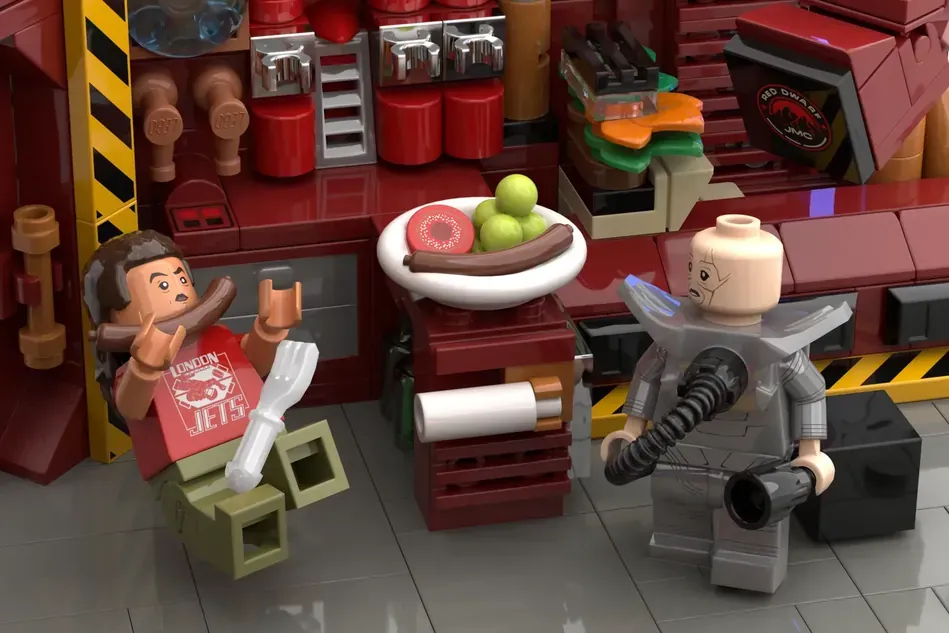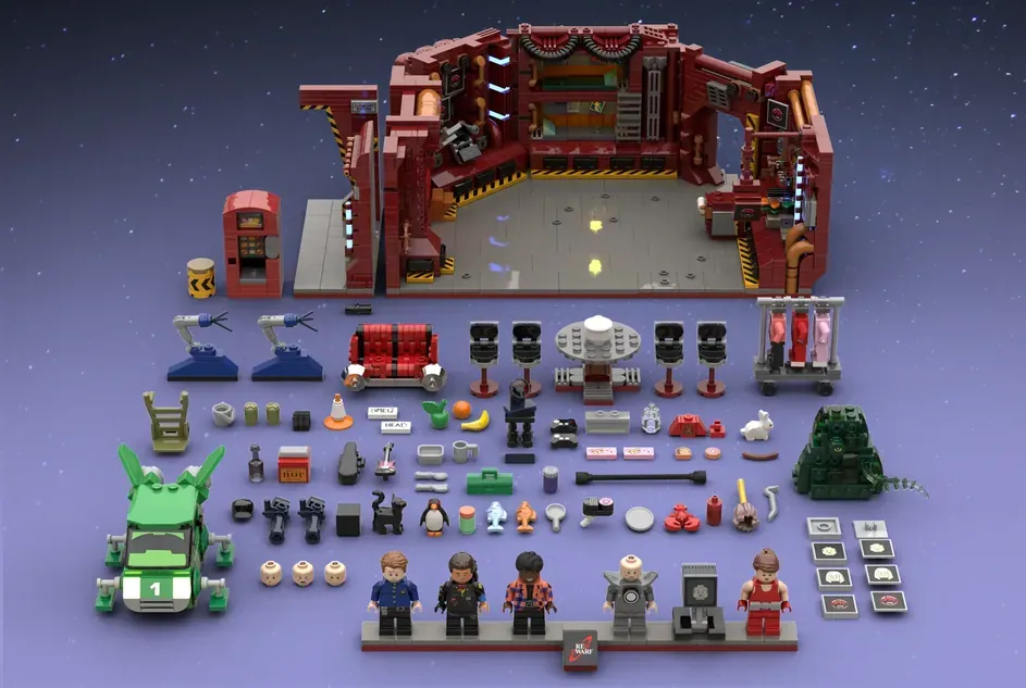 The detailed 1,953-brick build comes with five minifigs – Dave Lister, Arnold J. Rommer, Kryten, Cat, and Kristine Kochanski – and tons of in-jokes and references, including Dwane Dibbley’s thermos and the Polymorth in his rabbit and sausage forms.