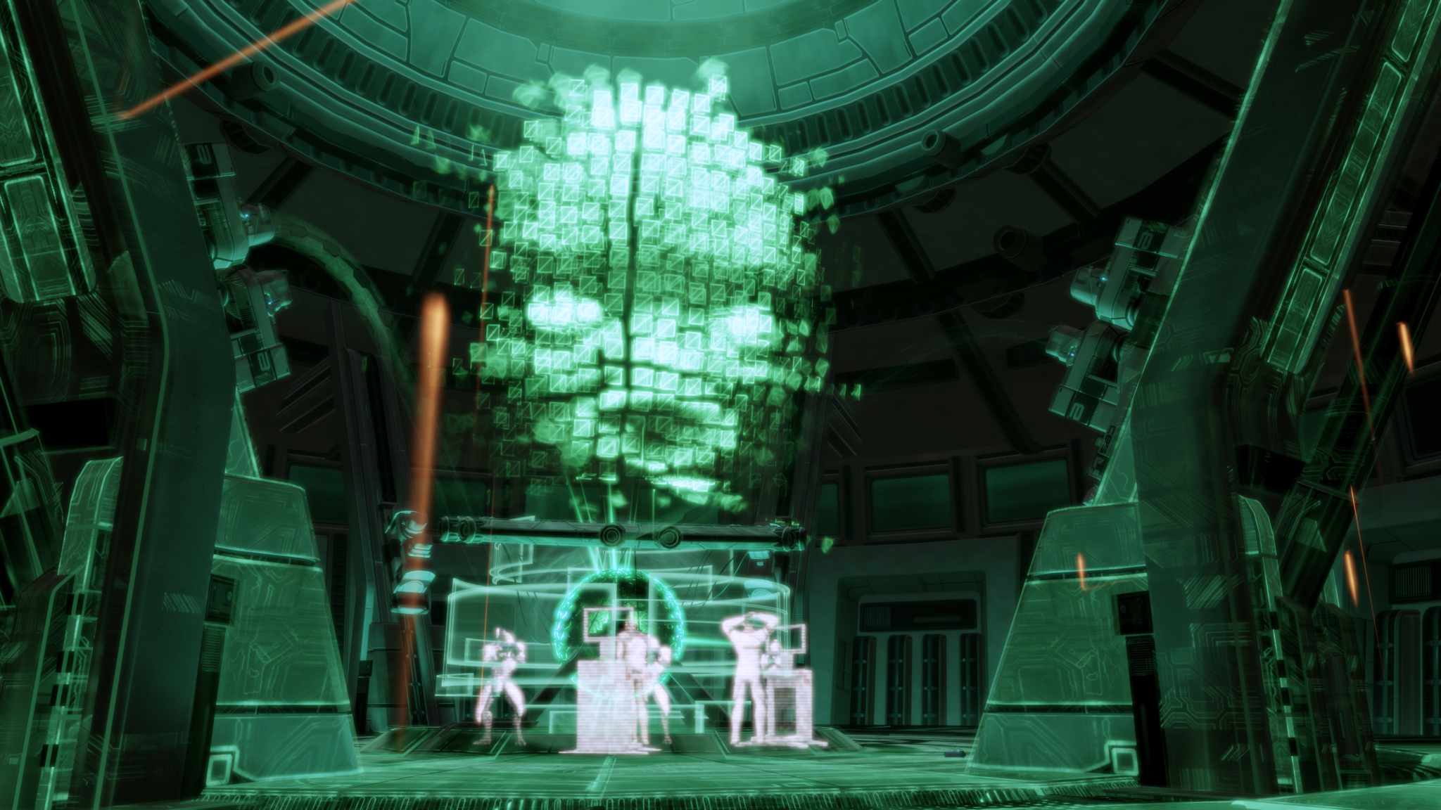 The only apparent survivor of the massacre was the head of the research project, Dr. Gavin Archer. When asked what happened, Gavin states that the goal of this facility was to create a hybrid of human and artificial intelligence in order to better communicate with and further understand the Geth. Gavin then mentions how his brother, David, volunteered for the trial but that things went wrong and the A.I. overpowered him, leading to this situation where a rogue, sentient virus has taken control, killed everyone, and is looking to escape the confines of the facility.