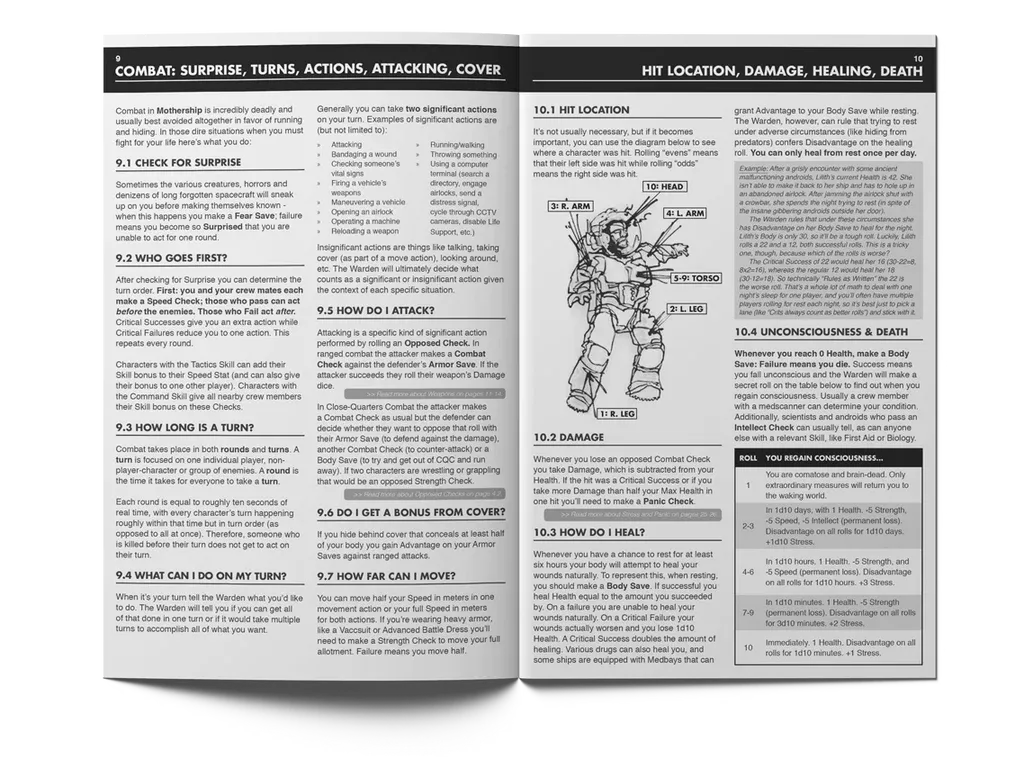 “I think it’s really good,” says Mark Boardman, host of the Dungeonpunx podcast and early fan of Mothership. “The fear/stress mechanic works really well – you can ‘feel’ tension ramping up with the way it handles your dice rolls. [We] had a marine who was failing his stress rolls and I was standing up screaming ‘Marine… MARINE… WHAT THE FUCK ARE YOU DOING!?’”