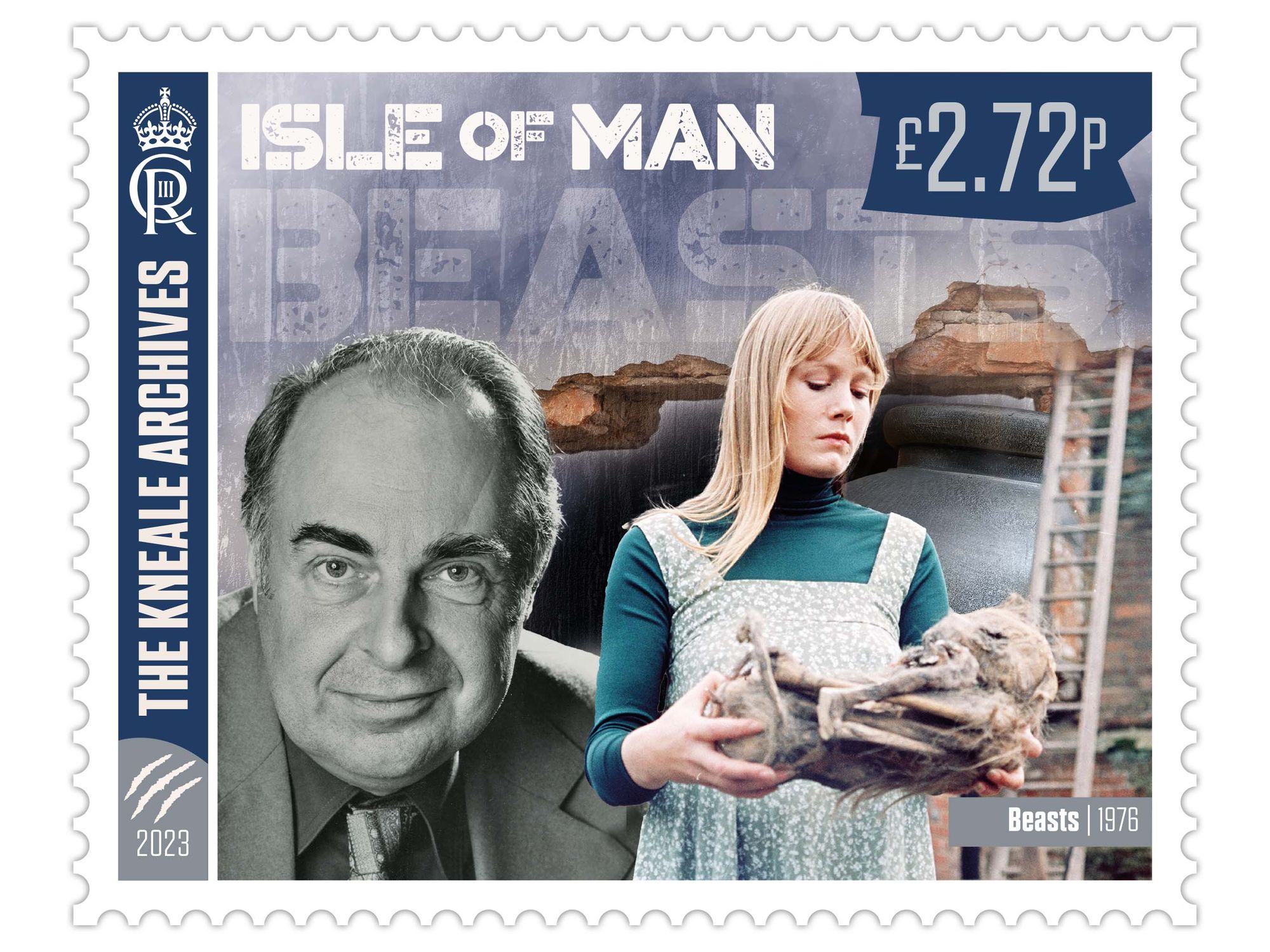 The set of six Kneale Archives postage stamps is available from the Isle of Man Post Office and covers his career right from his beginnings in the theater, and his 1949 anthology Tomato Cain and Other Stories, to his iconic science fiction work, including the dystopian The Year of the Sex Olympics (1968), ghost story The Stone Tape (1972), and horror anthology Beasts (1976).
