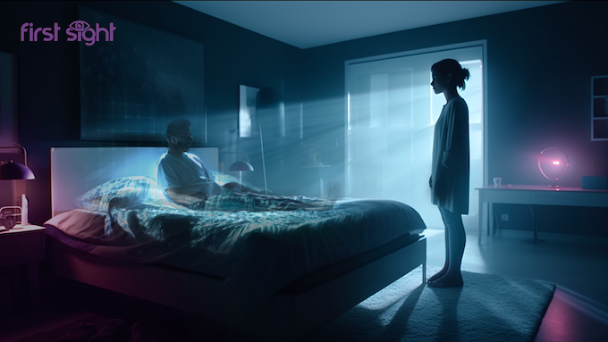 Though not as overtly cyberpunk as McGee’s previous short film, First Sight – which he compares to Black Mirror – explores some themes that have been core to the genre since its inception: how all-pervasive technology forces its way into human relationships, and the role played by private companies.