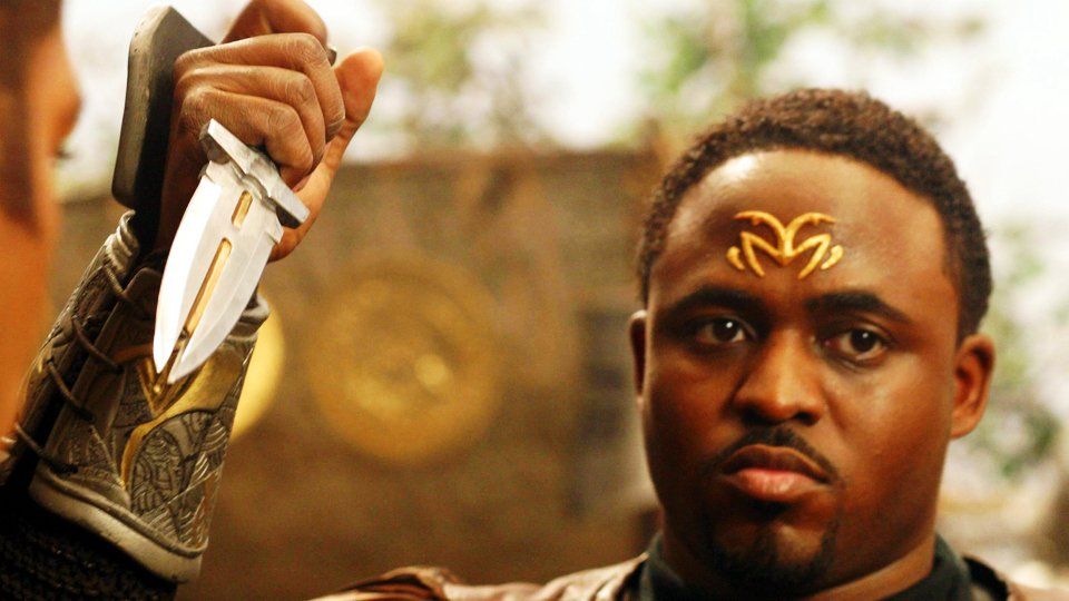 Okay, so this one is super-random and super-specific. Remember Trelak from the Stargate SG-1 episode ‘It’s Good To Be King’ (S8, Ep13)? System Lord Ares is trying to go back to an old planetary haunt in order to turn it into a military asset, but unfortunately, that’s where Harry Maybourne has retired. Trelak, played by Wayne Brady, is Ares’ First Prime and as a Jaffa, is also host to a larval Goa’uld symbiote. The most noticeable thing about his appearance is a massive gold marking on his forehead.